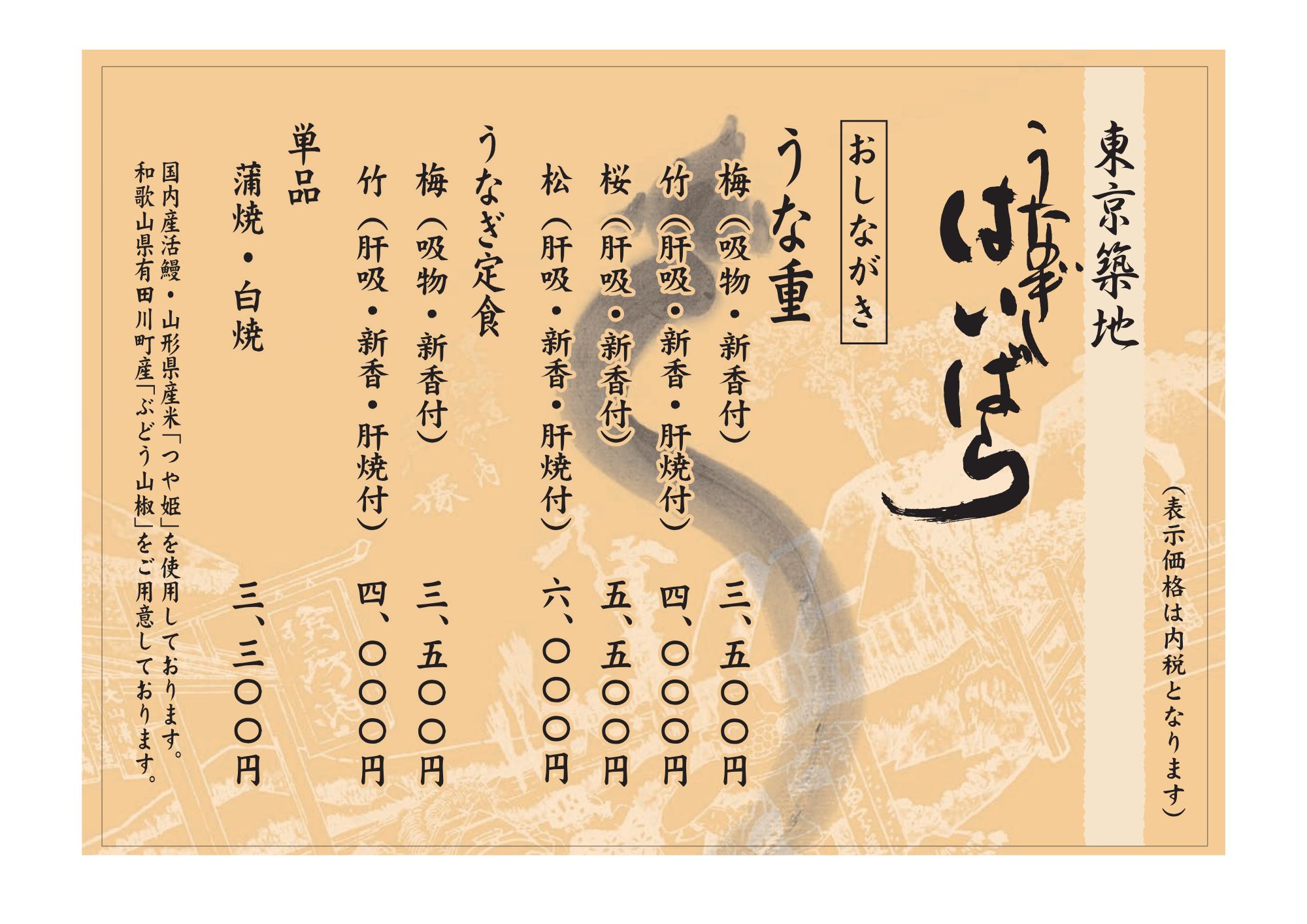 | 築地1号店(売店) 昭和33年より鰻問屋直営店として店舗を構えております。 「うなぎはいばら」の蒲焼・うなぎ弁当をその場で焼いて販売。 白焼は前営業日までのご予約販売。 真空パック製品のご予約は、1週間前までにお願いします。 うなぎ蒲焼:2,700円(税込)より ・弁当の販売は8:00からとなります。 東京都中央区築地4-8-2 TEL&FAX 03-3541-9713 営業時間 7:00〜14:00 休業日 日曜・祝祭日・休市日(別途休業する場合がありますので、お知らせをご確認くださいませ) |